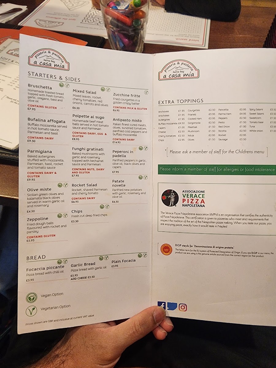 What truly sets A Casa Mia apart from similar restaurants is its official recognition from the AVPN (Associazione Verace Pizza Napoletana), a rare honour in the UK and a testament to the kitchen’s dedication to tradition and quality.